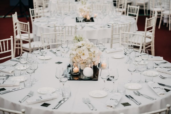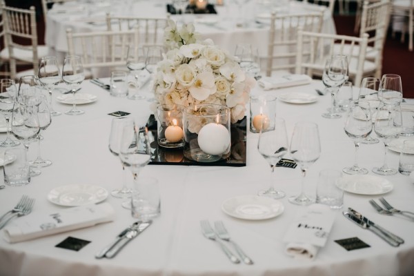 That elegant black square table with metal legs will be an excellent addition to your indoor event.